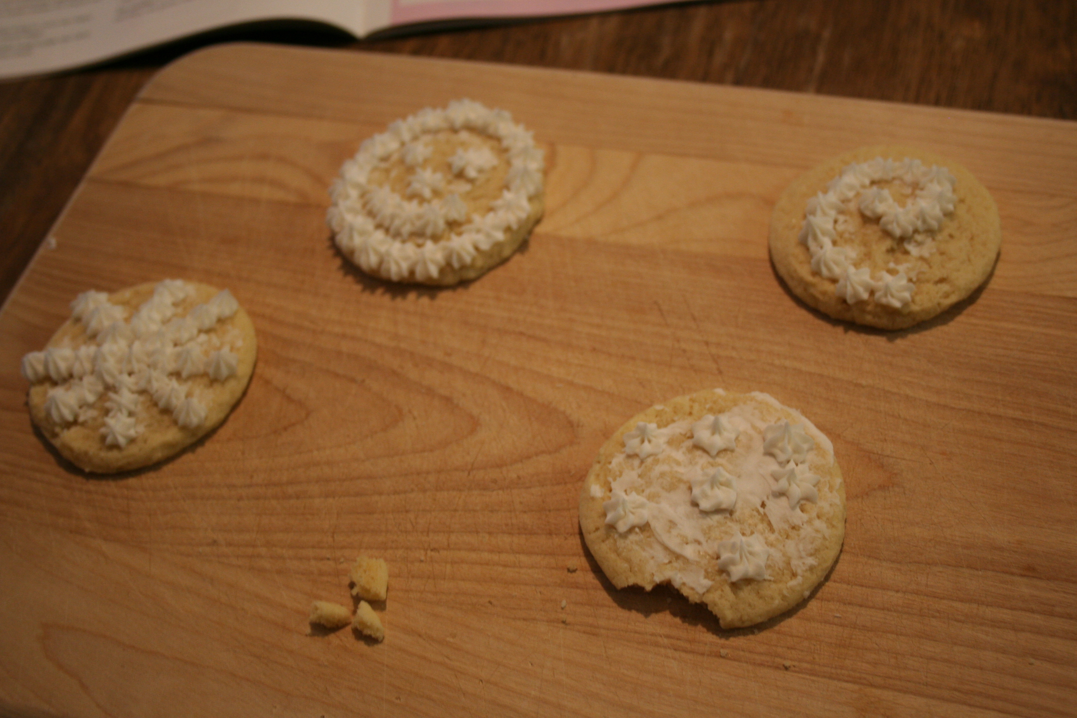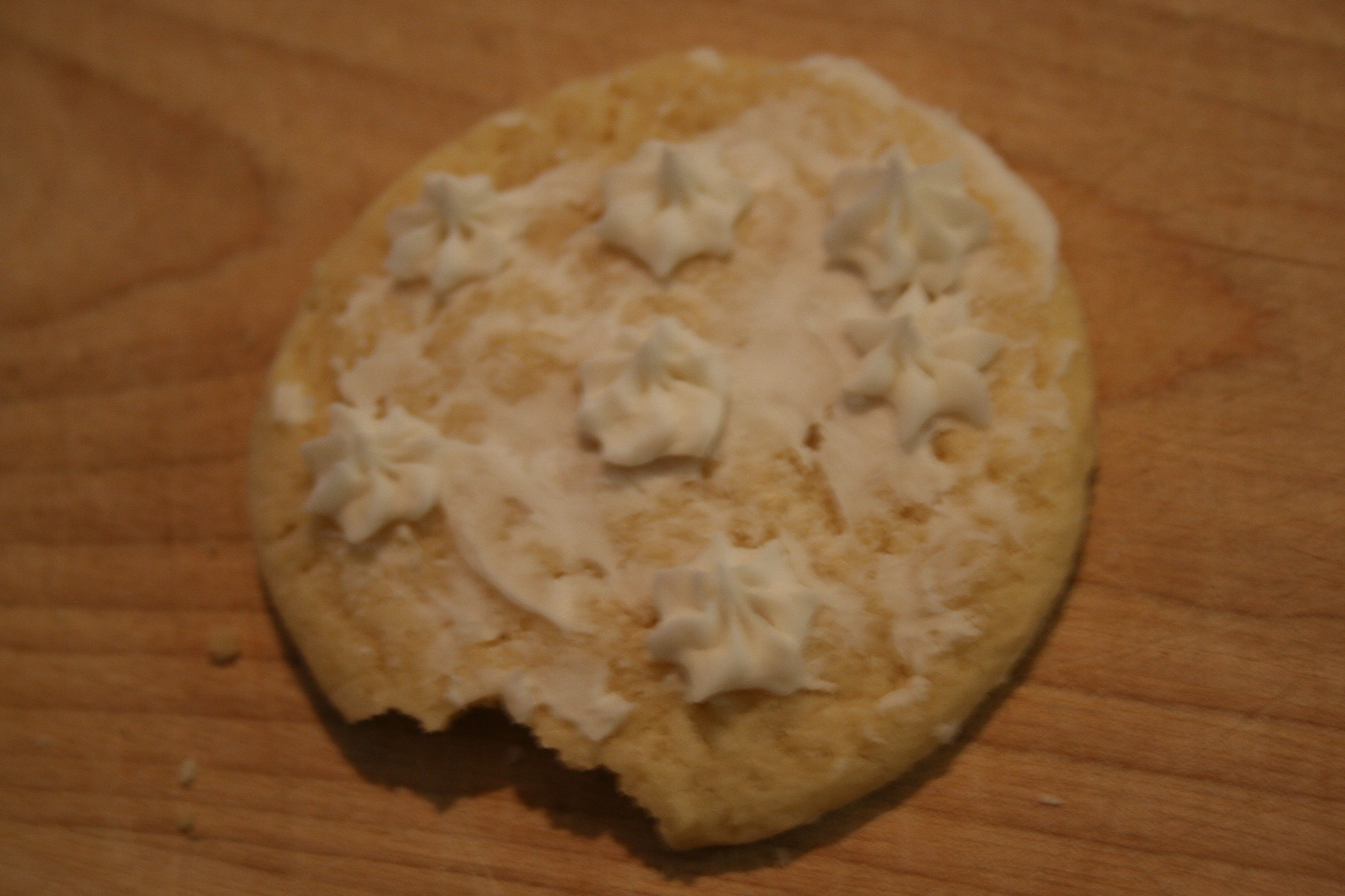By the end, my hand was cramping. Last cookie just crumbled and I had scraped so much icing off that it was just a white blob.
