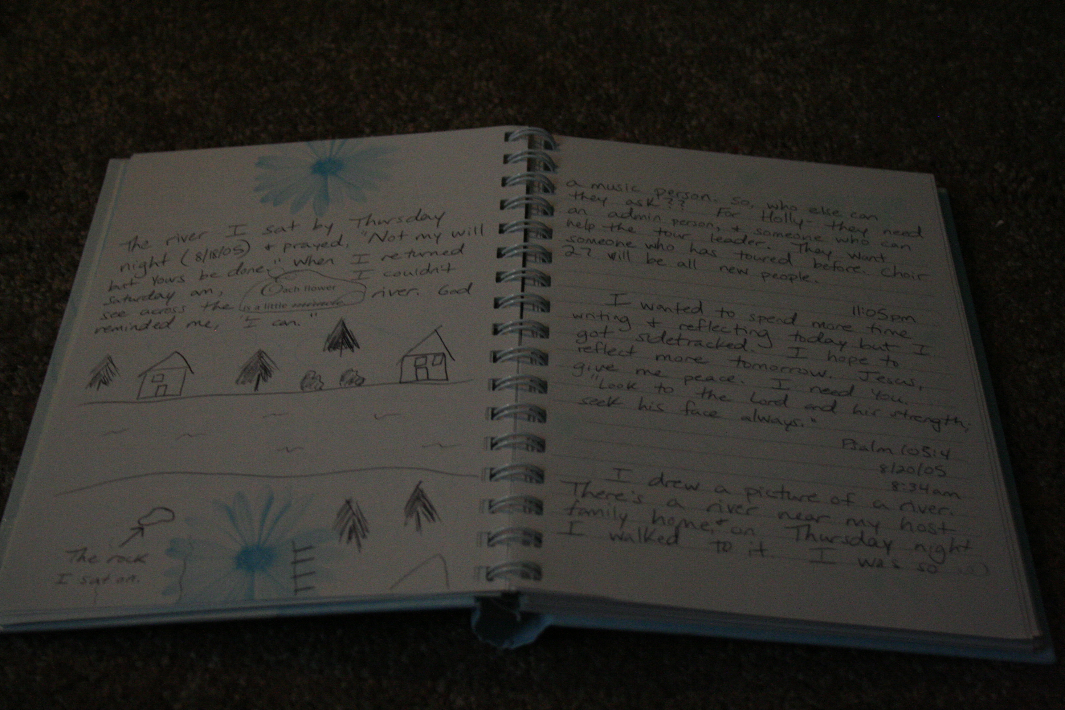 The next journals I had were from high school. I could only bring myself to read snippets from them. I have a low tolerance for teenagers and can only put up with so much drama and self absorption. Apparently my teenage self isn’t exempt. I cringed at the shallowness in some of the entries. Filled with self pity and oh woe is me mentalities, I rolled my eyes at half the entries. I put them down and went onto the next one; my college journals. I know I’ll need to read thru ALL of my high school journals soon, but we’ll just take it a little at a time.