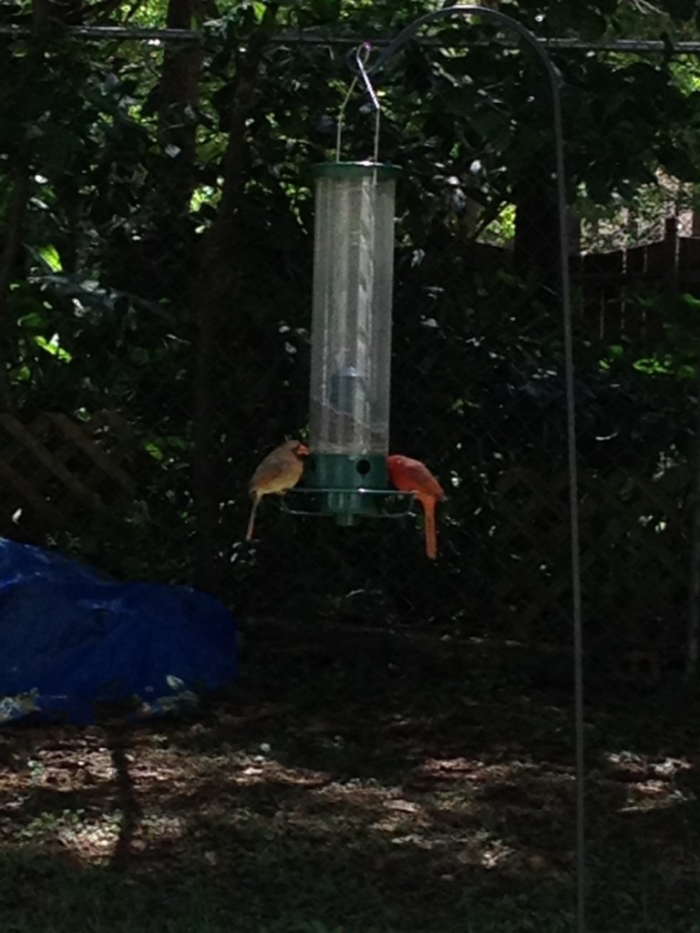 My bird feeder and bird bath are a hot spot lately. I’ve enjoyed sitting on my front porch in this beautiful spring weather we’re actually having and watch them fight over the food.