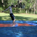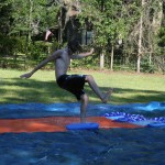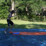 Drew was trying to perfect a flip throughout most of the weekend, but could never quite master it. He’d land on his back, with a large tidal wave sweeping most of the water out of the pool.
