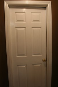 This is my door. I know it doesn’t seem so exciting, but this thing took some work. This is the door to the master bedroom. The original door had a big hole in the top, like the previous tenants might have had a disagreement at some point and decided the door would be a better recipient of their anger. While painting the bedroom, we took the door off to have easier access to all the walls. Luckily, since Drew and I live alone, there was no big rush to put another door up.