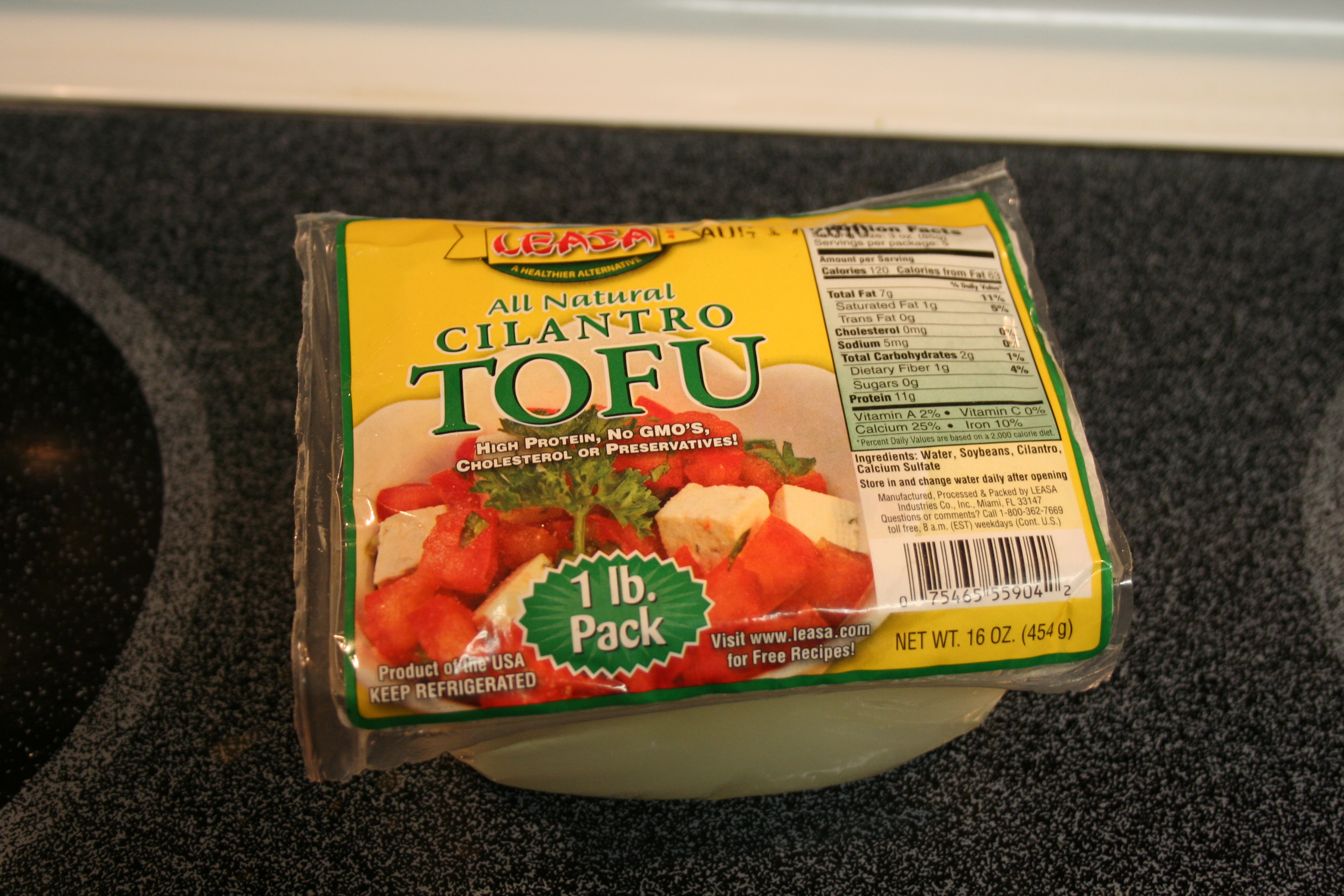 What were my thoughts on the tofu? Not bad. Like I said, I’d tried it before and liked it. It’s definitely got a weird texture. Kind of like munching on my bathroom sponge… But I dunno. It’s different. Kind of fun, I guess. I was disappointed that I couldn’t taste the cilantro so much. The flavor was all tofu, and since tofu doesn’t have much of a flavor, it was a bit bland. Probably would be better with a marinade.