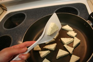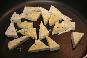 I found a few different websites, and learned a few interesting tid bits on this protein packed product. Don’t eat it raw. It contains bacteria that will not be kind to you later. At the very least, you must steam tofu to kill all those nasty suckers. Many of the cooking methods involved marinating for an hour. I’m sure that would be tasty, and I knew from experience that tofu takes on the flavor of whatever you cook it with, but frankly, I didn’t have that kind of time. And since it was CILANTRO tofu, I didn’t want to pull in too many other flavors. I wanted to see how much of the cilantro I could taste.