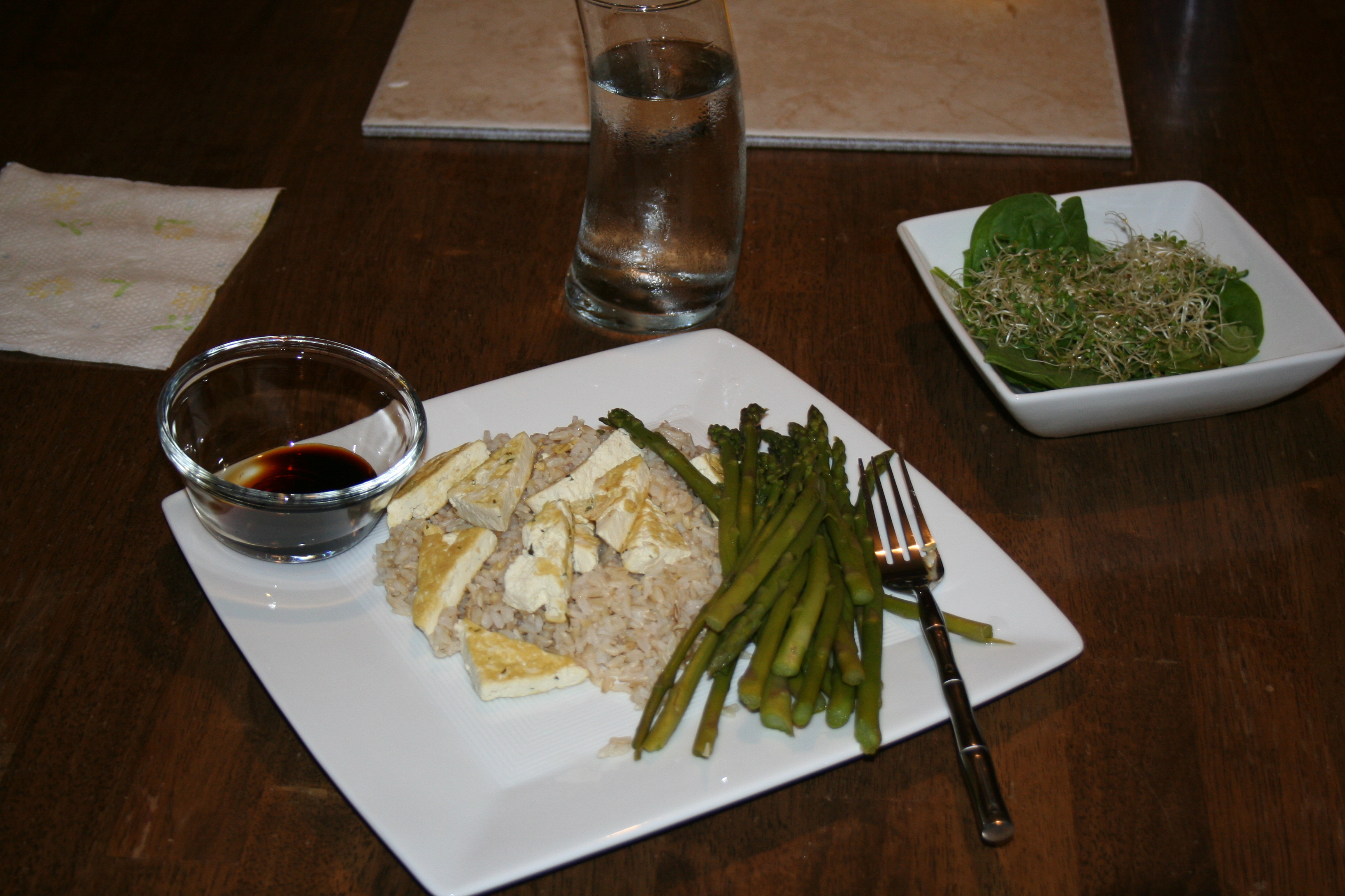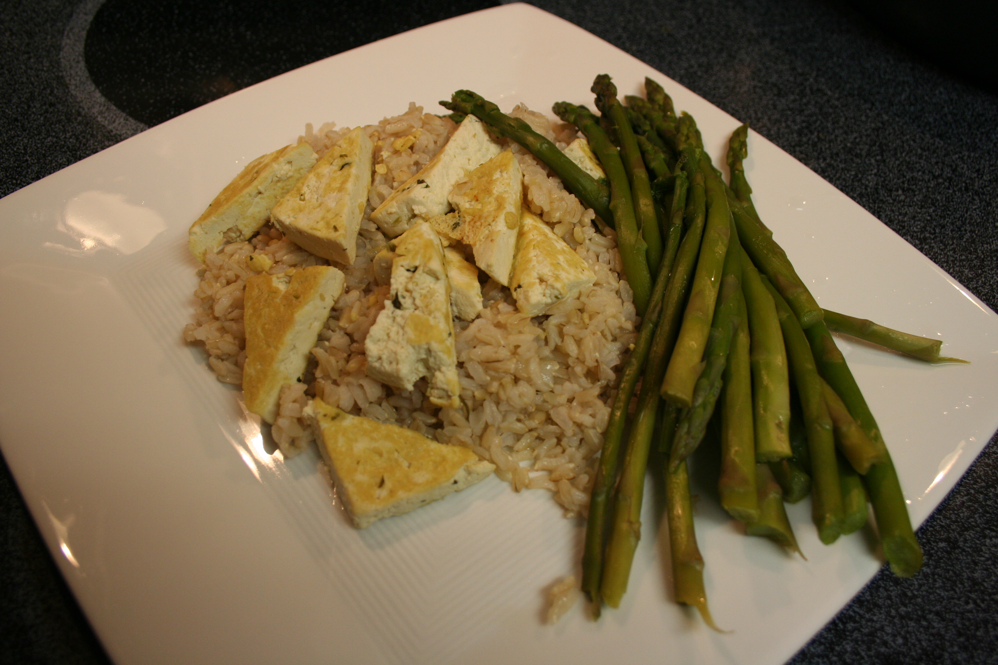 With my brown rice and steamed asparagus, I had dinner.