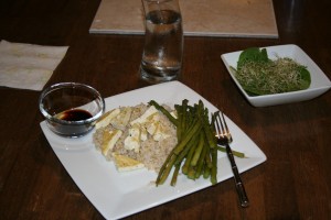 How's my plating technique? I tried to artistically place the asparagus, but they just flopped wherever...