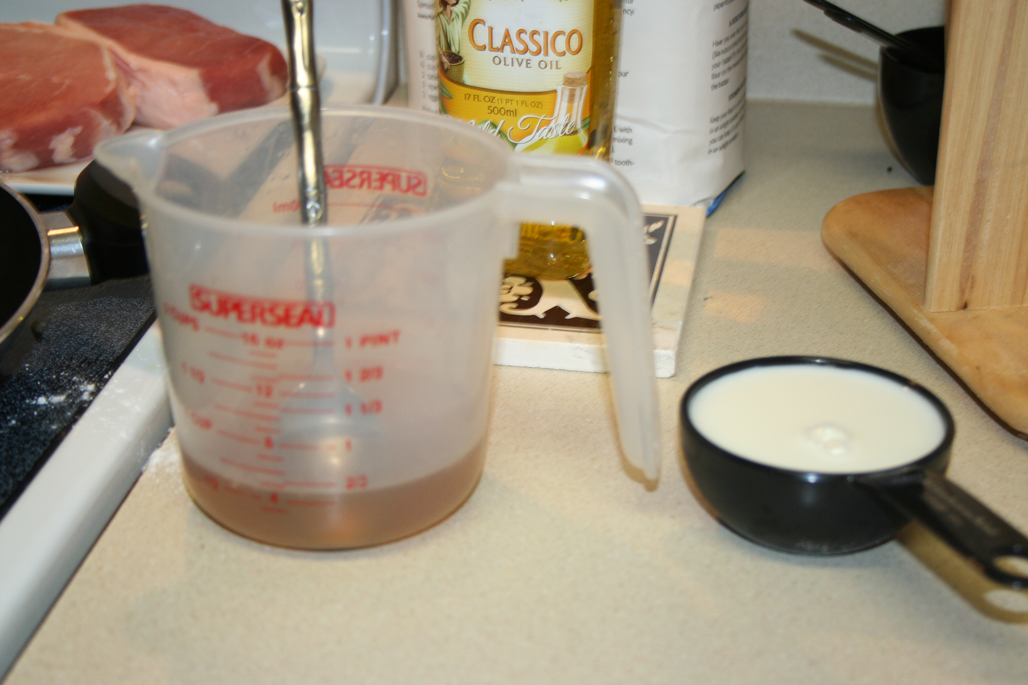 I pulled pork chops out of the freezer yesterday morning, and figured I’d do something with them for dinner. I googled some recipes, and decided on the recipe with the white wine mushroom sauce. The recipe called for a can of cream of mushroom soup, which I did not have. I knew that Drew could stop at the store for some, but I figured there had to be some alternative that I could use. I googled cream of mushroom soup substitute and found a recipe. I even had all the ingredients, so I decided to give it a shot.