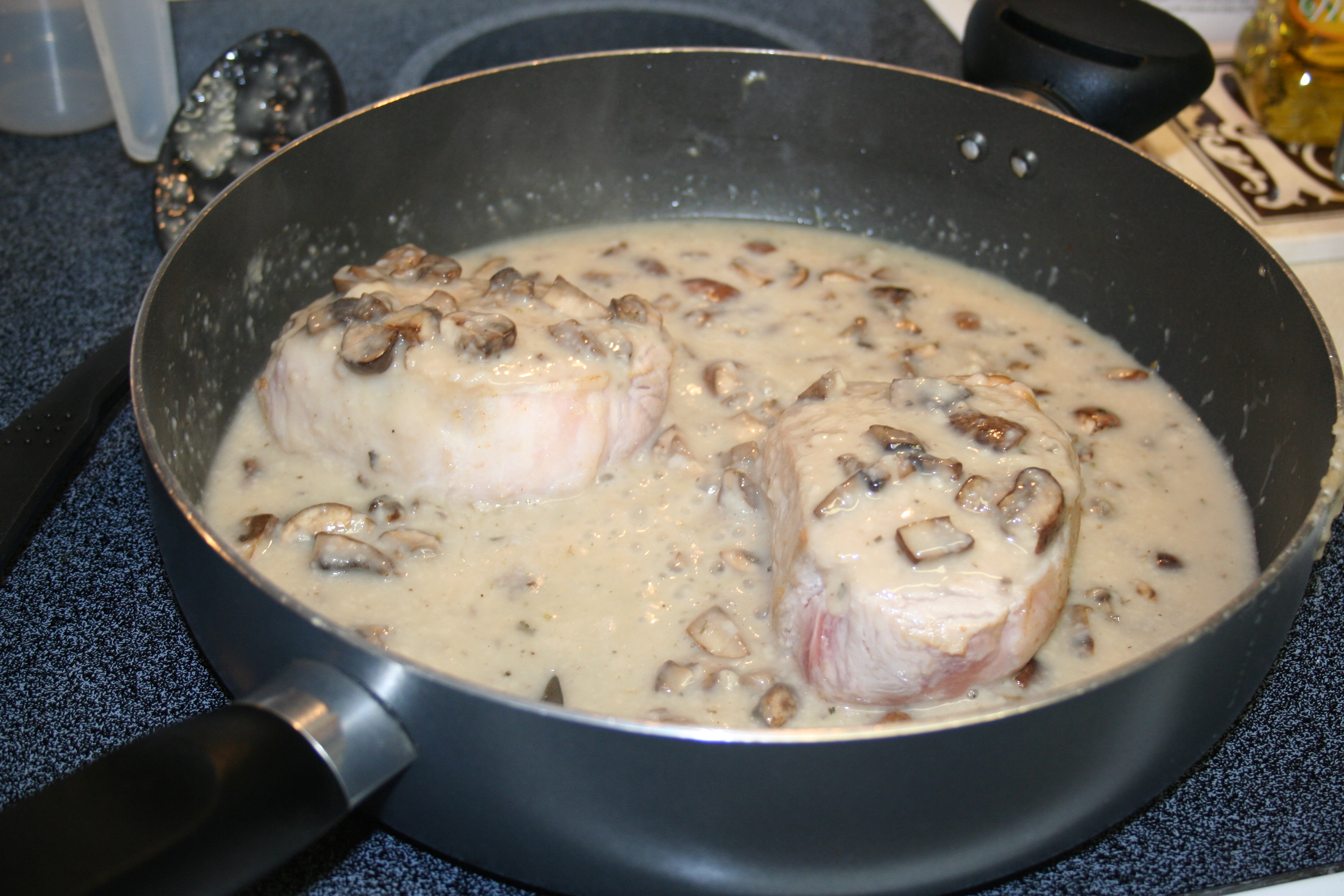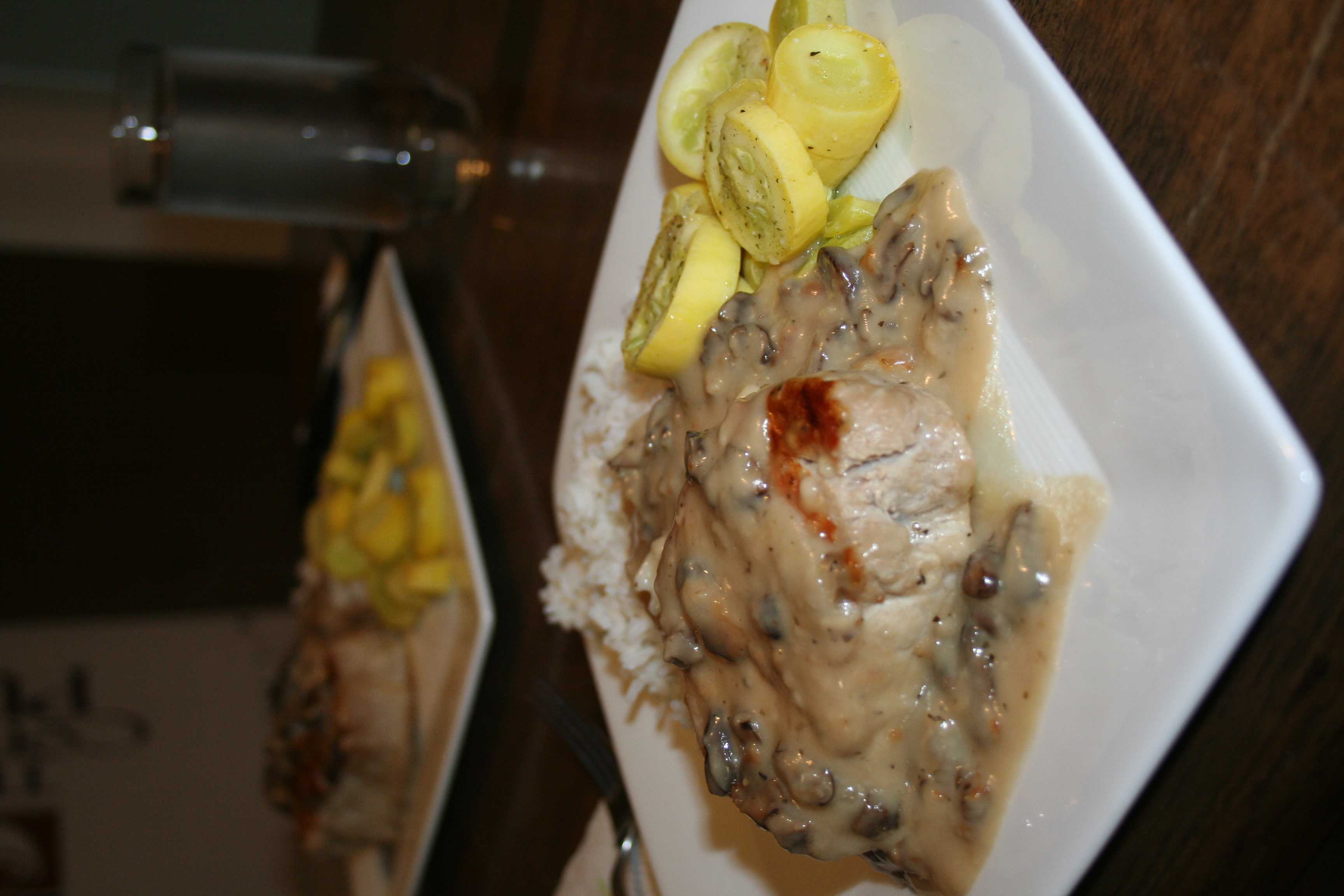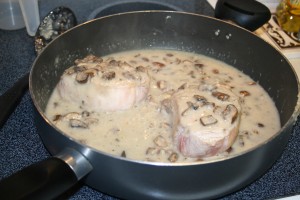 A few weeks back, I posted a blog about some goals I had set for myself. Although I haven’t crossed nearly as many off as I’d like, I am making progress on a few. Although no plants have been planted yet, I did take some time to weed the future flower garden that I’d like to have. I continue to work on yoga and push myself. I DID clean out my pantry and reorganize, and I have been making an effort at couponing (which can give you a real rush if you do it right!). I have even been able to make some splendid dishes that I never thought I’d make. Last night I boasted on Facebook about my dinner entree of pork chops in a white wine mushroom sauce, with made from scratch cream of mushroom soup. Inspired by my tofu entry, I thought I’d snap some more pictures and show off my culinary art once again.