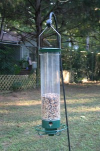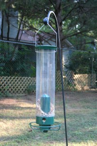 We know it’s not the squirrels, because we have one of those fun squirrel proof bird feeders that flings them off when they hang on the perch. So we wonder… what goes on during the day when we’re not home? One big party? My nerdy husband was determined to find out and installed a web cam in one of our windows so we can watch it during the day.